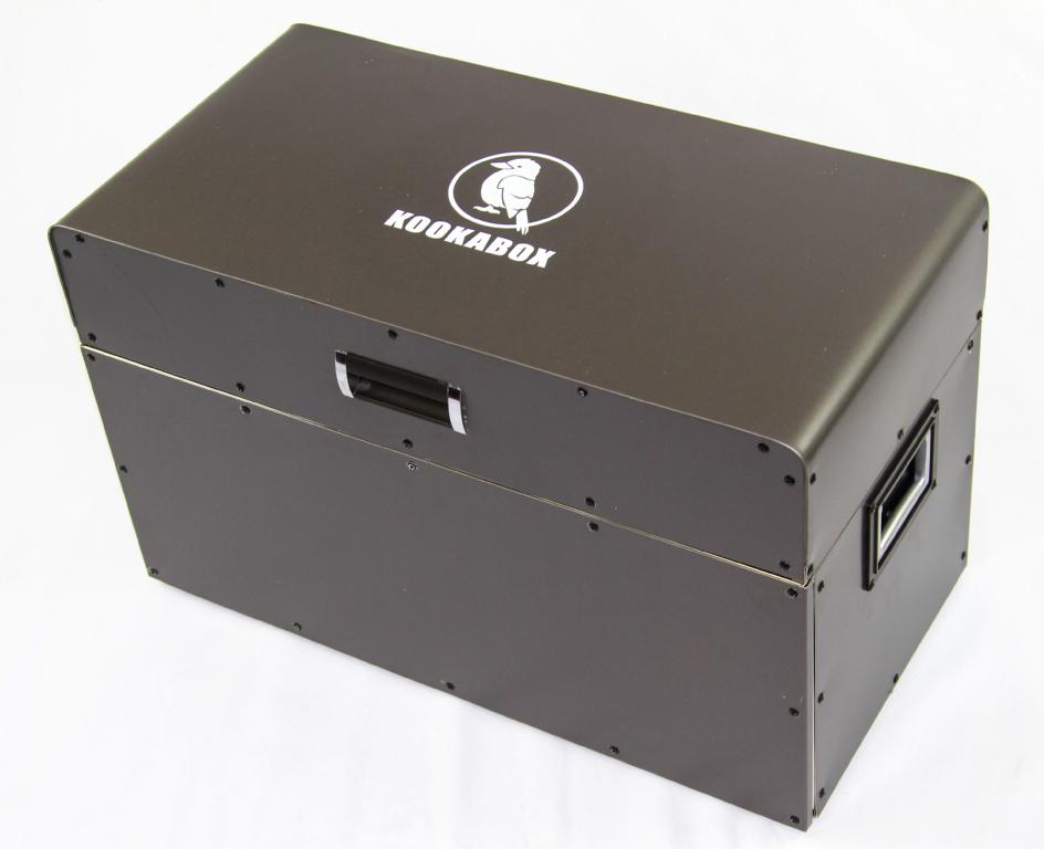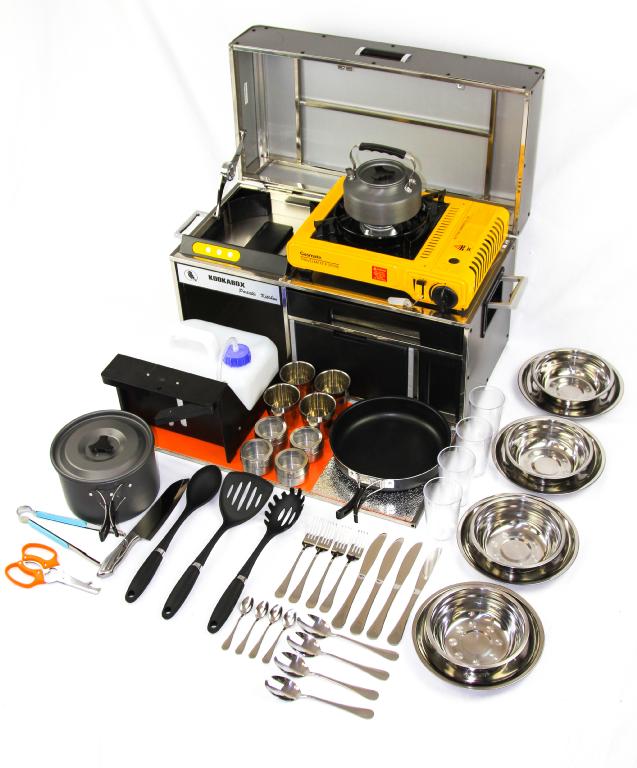 Catalogue: KOOKABOXThe complete portable kitchen.Comes with 5L water lithium battery pump,LED lighting,all the gear as shown.Weighs 18.6 kgs.Call for more info Price includes GSTShipping Extra